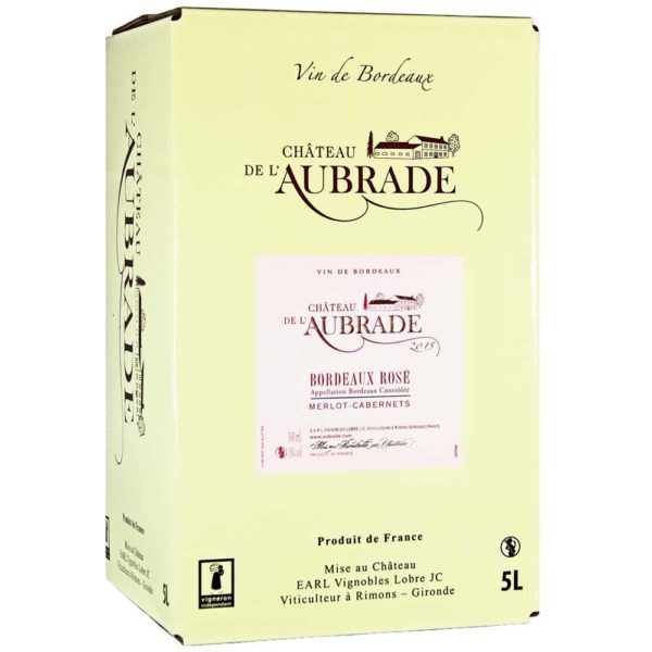 Probieren Sie den Château de l’Aubrade Rosé 2020, abgefüllt in der praktischen Bag-in-Box mit 5 Litern. Der erfrischende, trockene Bordeaux Rosé vom Winzer Christoph Lobre ist eine gelungene Abwechslung zu den hervorragenden Weißweinen, die dieses tolle Weingut herstellt. Seine Aromen enthüllen Noten von roten Früchten mit feinen Blumenaromen. Im Mund klar und aromatisch mit guter Balance zwischen Frische und Weichheit. Lang anhaltendes Finish.